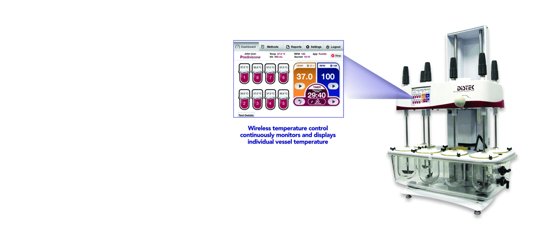 “The innovative use of our patent pending wireless temperature sensor technology further enhances the Model 2500, returning much needed time and labor savings back to the dissolution laboratory”, says Jeff Seely, Vice President of Sales & Business Development, Distek, Inc.