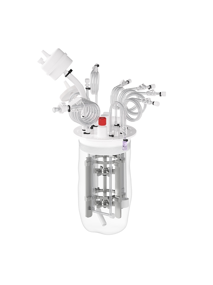 BIOne Single-Use Fermentor (SUF) with Flute Sparger and Dual Rushton Impellers.